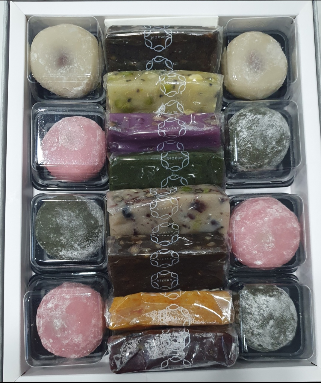 친구집 방문하면서 너무 크지 않고 예쁜 떡을 찾고 있었는데 마침 크기와 가격이 아주 적당한 떡 셋트를 보고 주문했습니다. 찰떡과 찹쌀떡이 조화롭게 배치돼서 너무 만족했습니다. 특히 찹쌀떡은 크기도 적당 하고 속이 꽉 차 있어서 맛있었습니다. 부담스럽지 않은 선물용으로 너무 좋 습니다.